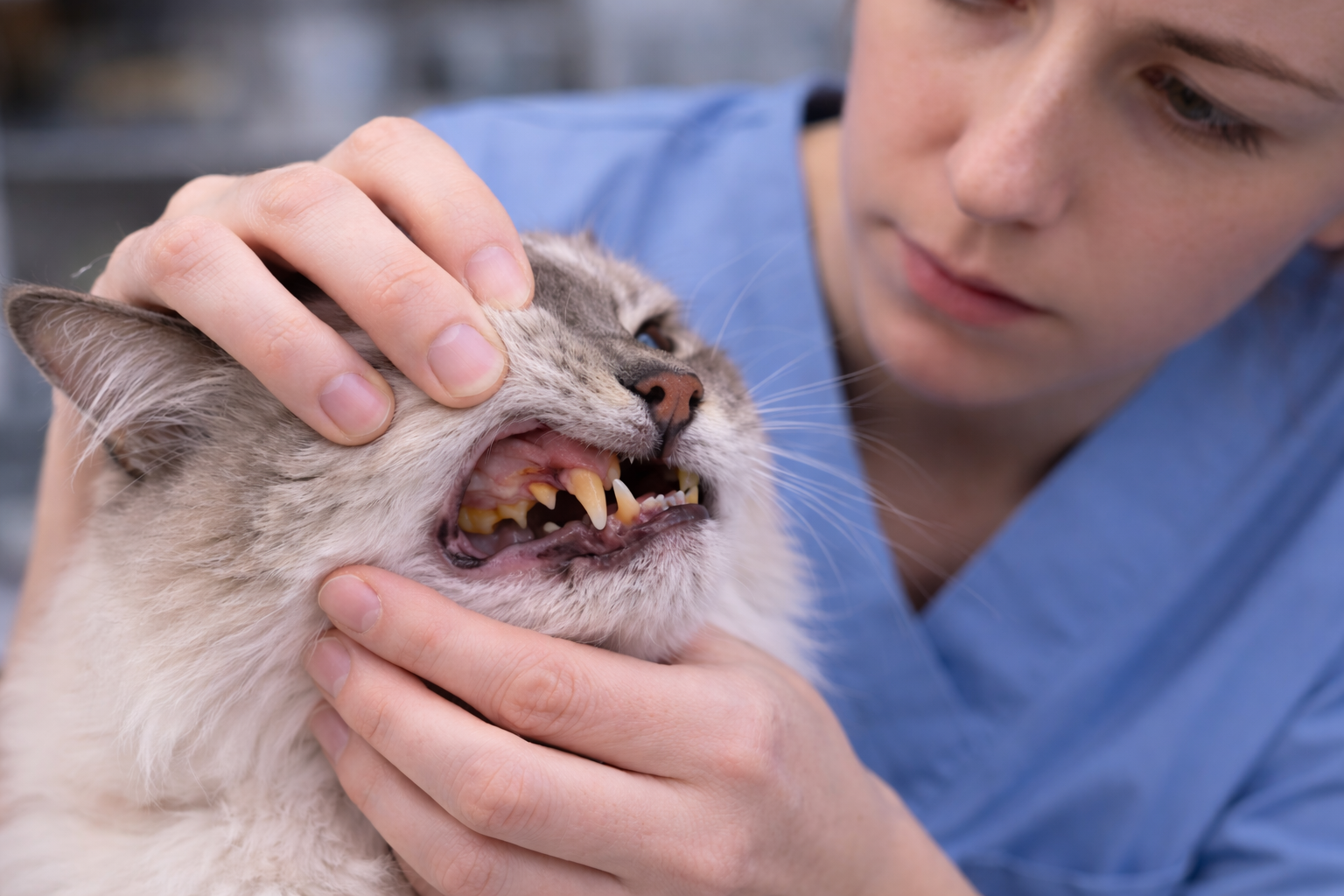 "A cat comes in for a routine checkup. The owner thinks everything's fine. Then I lift the lip and show them the horrible breath, the yellowish teeth, and the early infection no one can see. They're always shocked. 'But he seems totally normal,' they say. That's the problem — by the time cats show symptoms, we're looking at months of damage."